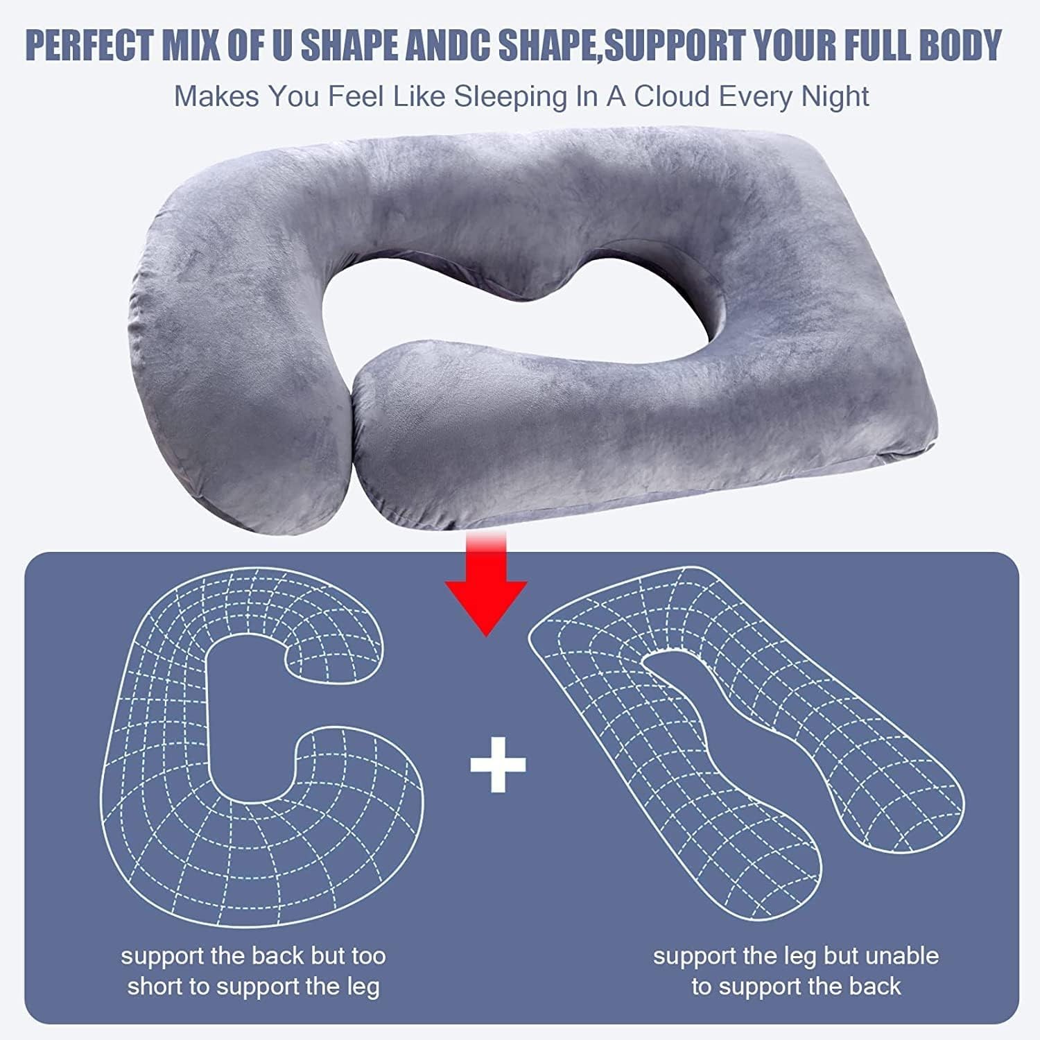 Ergonoomiline multifunktsionaalne kogu keha padi on loodud, võttes arvesse raseda naise keha vajadusi, see embab õrnalt ja toetab iga kehaosa, tagades rahuliku ja sügava une.