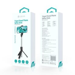 A solid and aesthetically designed Devia selfie stick with a comfortable phone holder and a built-in tripod. The phone can be placed in either portrait or landscape position. Compatible with phones with a diagonal of up to 7"".#13#10#13#10The shutter in the phone is activated using a button on the remote via a Bluetooth connection. The device has been designed to take up very little space when folded.#13#10#13#10The selfie stick arm extends to a length of 700 mm.