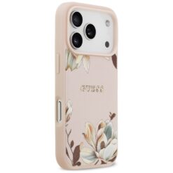 Guess Case Magsafe Grained PU Case With Printed Flower Pattern For iPhone 17 Pro Max Pink