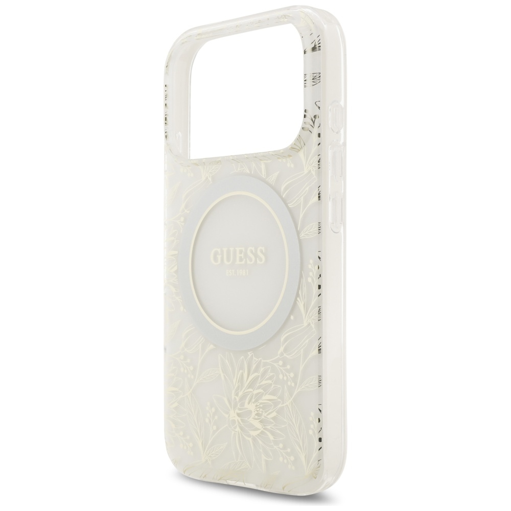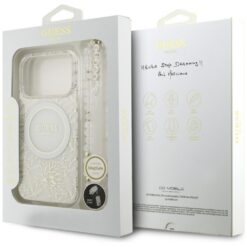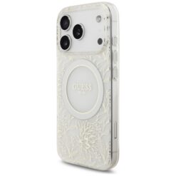 Guess Case Magsafe IML Case Flowers Electroplated Allover With Beads Strap For iPhone 17 Pro White