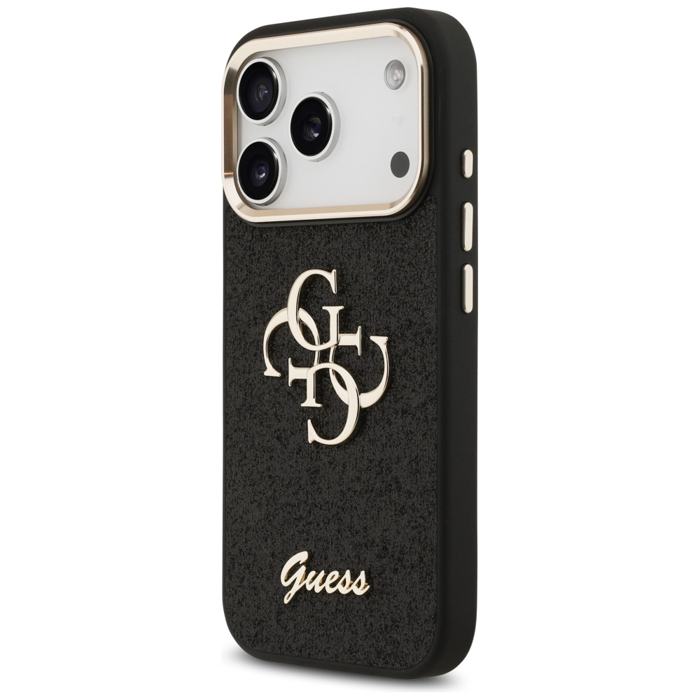 Guess Fixed Glitter Big 4G Metal Frame case for iPhone 17 Pro black