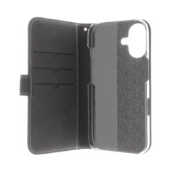 Stylish Hand Made Genuine Leather Flip Case for iPhone 16 Plus with three credit card slot and pocket.
