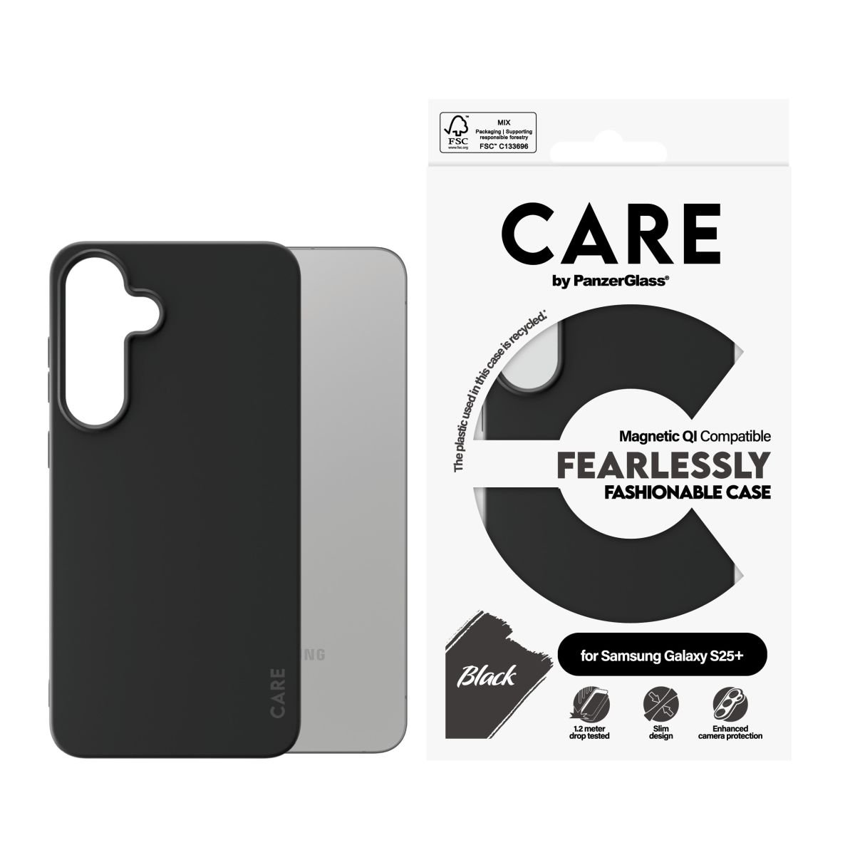 Kaitseümbris Fearlessly Fashionable Magnetic, Samsung Galaxy S25+, must, MagSafe ühilduv, CARE by PanzerGlass