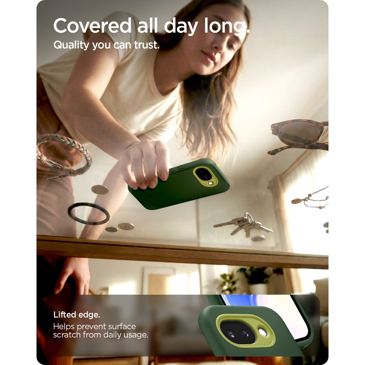- Kõrgendatud ääred ekraani ja kaamera kaitseks
