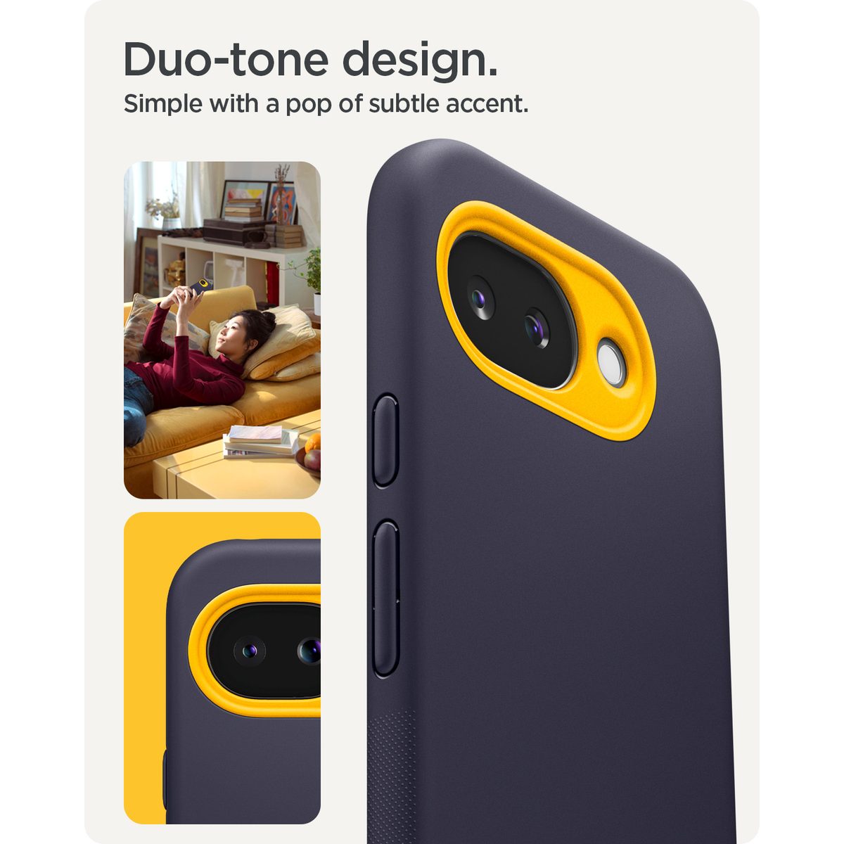 Spigen Nano Pop (MagFit) kaitseümbris telefonile Google Pixel 10a ühendab mängulise kahetoonilise disaini ja usaldusväärse igapäevase kaitse. Õhuke, kuid vastupidav ümbris kaitseb telefoni kukkumiste, löökide ja kriimustuste eest, säilitades samal ajal mugava käsitsemise.