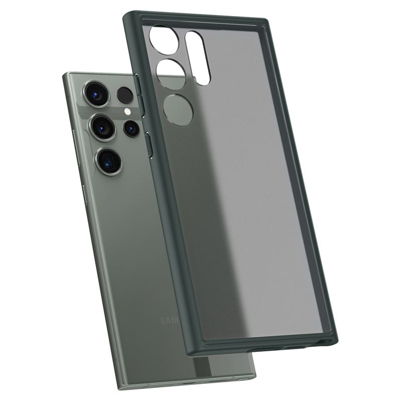 Kaitseümbris Ultra Hybrid, Samsung Galaxy S23 Ultra, läbipaistev tumerohelise äärega, Spigen