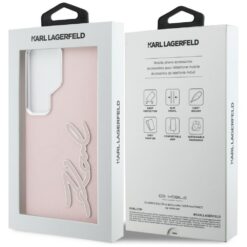 Karl Lagerfeld case Grained Signature Metal Resin Logo for Samsung Galaxy S26 Ultra pink