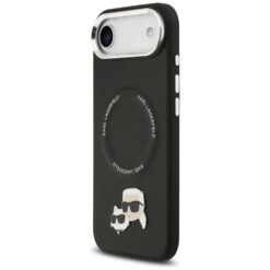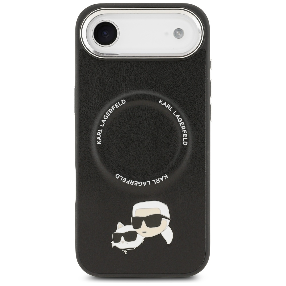 Karl Lagerfeld case Magsafe PU case with Karl&Choupette heads pins logo and metal camera buttons for iPhone 17 Air black