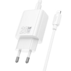 Laadija Hoco N60 20W GaN USB-C + USB-C to Lightning cable 1.0m valge