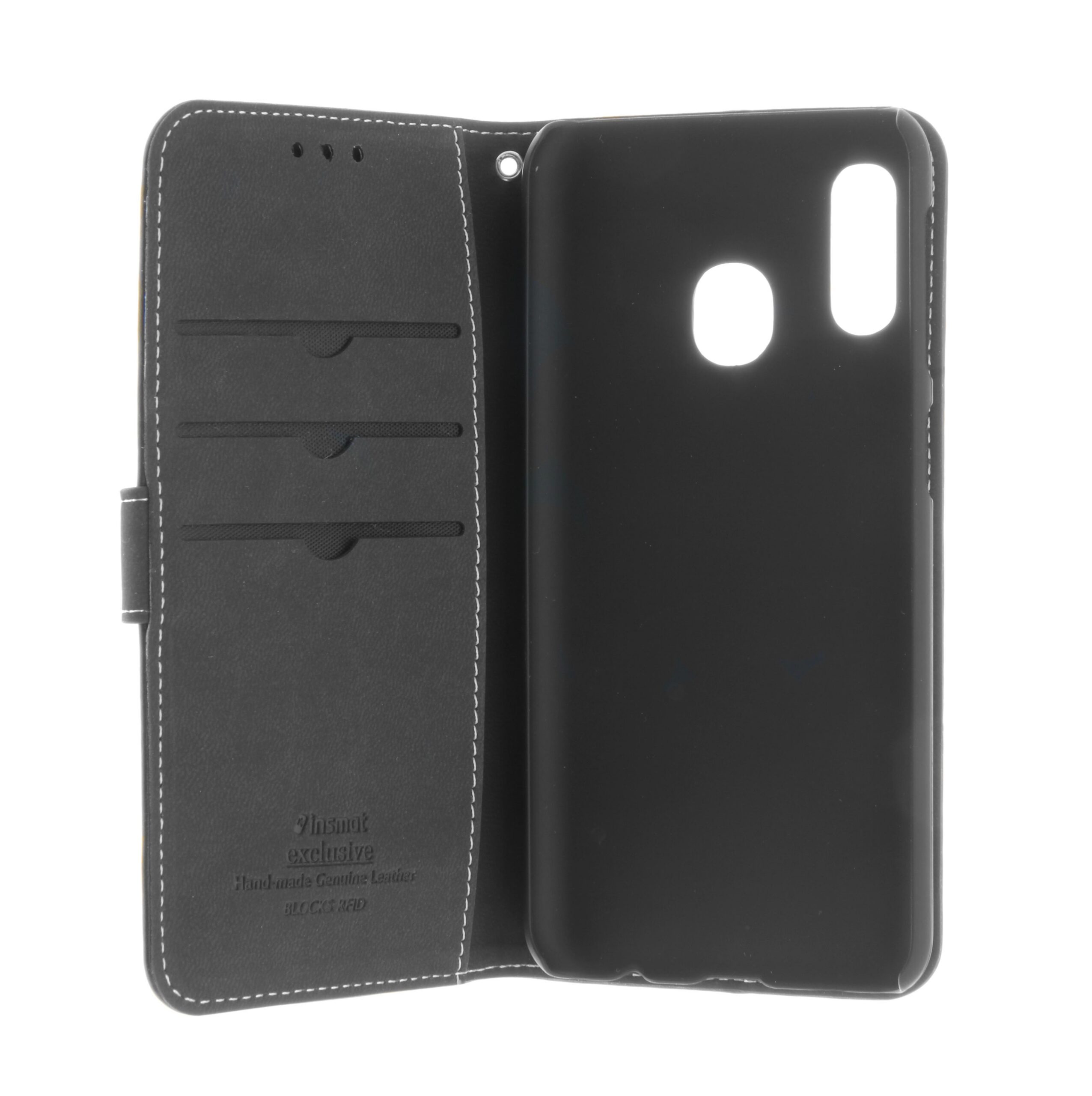 Stylish Hand Made Genuine Leather Flip Case for Samsung A20e, with three credit card slot and pocket.