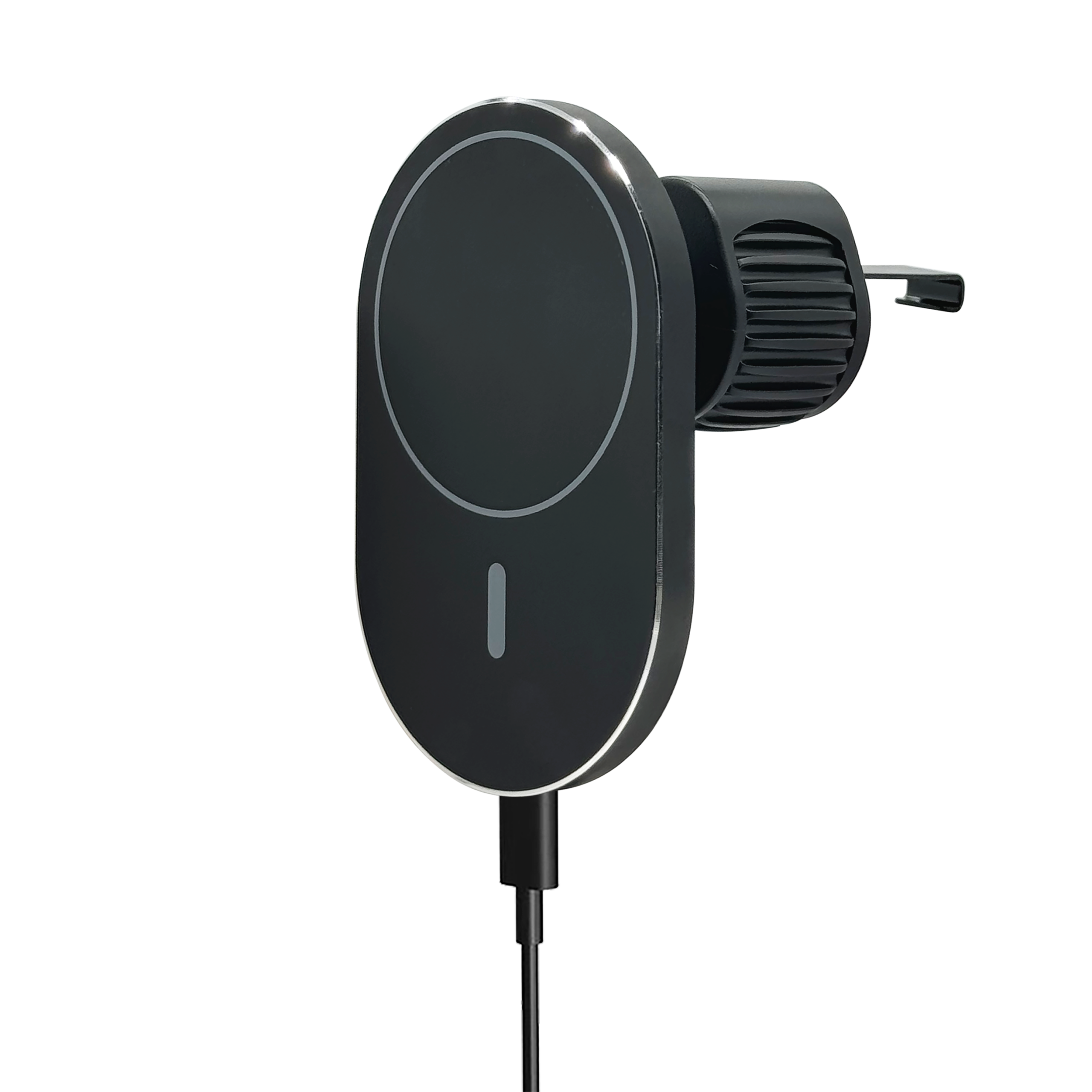 The Setty MagSafe wireless car mount combines modern design, convenience, and reliability. Its elegant, minimalist construction perfectly complements the car’s interior, while the MagSafe-compatible magnetic attachment ensures a secure grip on your phone even during dynamic driving. With wireless charging up to 15W, you can conveniently recharge your device without connecting cables. #13#10The mount, installed on the air vent using a sturdy metal hook, guarantees stability and safety for the device. The adjustable tilt angle allows you to perfectly position your phone according to your needs—whether for navigation, calls, or music playback. #13#10Powered through a USB-C port and supplied with a USB-A/USB-C cable, the Setty mount offers efficient (≥70%) and safe charging, combining functionality with modern style. This is a practical choice for drivers who value order, aesthetics, and user comfort.