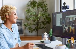The camera offers 2K resolution, making the image significantly more detailed compared to traditional 1080p cameras. This allows participants to see vivid, clear colors, enhancing the quality of video calls. Built-in fast autofocus maintains image sharpness even during movement, while automatic light correction adjusts brightness based on the room’s lighting.